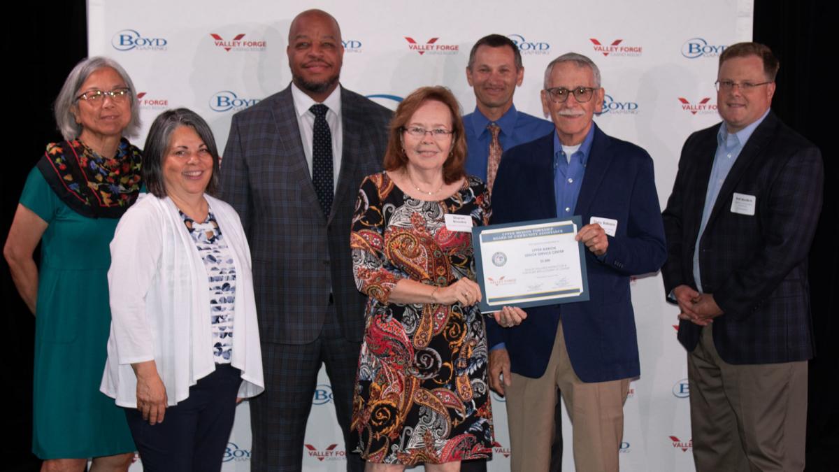 Pictured (center) are Sharon Brzoska, President and Tony Balsano, Board Director who represented the Senior Center at the BCA awards dinner in June.